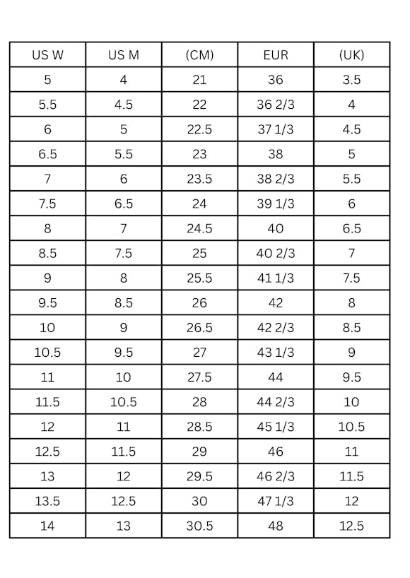 *PLEASE READ* If you ordered according to mens sizing please cancel your entry and re-enter. Please place orders according to the womens sizing and refer to the below size chart for your correct conversion.